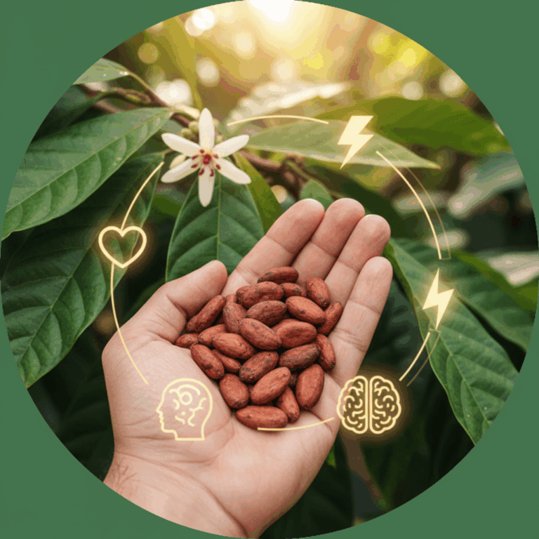 Este componente mejora la concentración y el rendimiento mental sin afectar el sueño, haciendo al cacao ideal para un estímulo equilibrado.